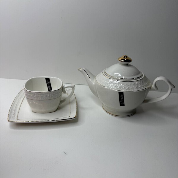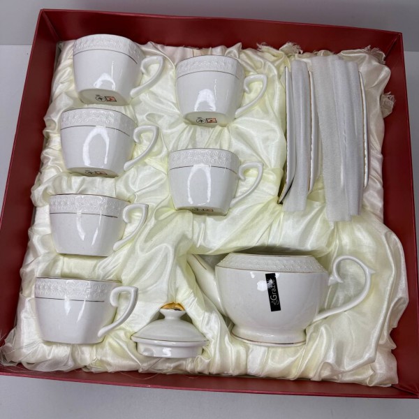 Складається набір з 13 предметів: 6 чашок об’ємом 240 мл, 6 блюдець та заварник об’ємом 850 мл. Зручна форма чашок та широка ручка забезпечують комфортне використання, даючи змогу легко утримувати чашку в руці та насолоджуватися напоєм. Заварник має оптимальний об’єм для приготування чаю на кілька осіб.