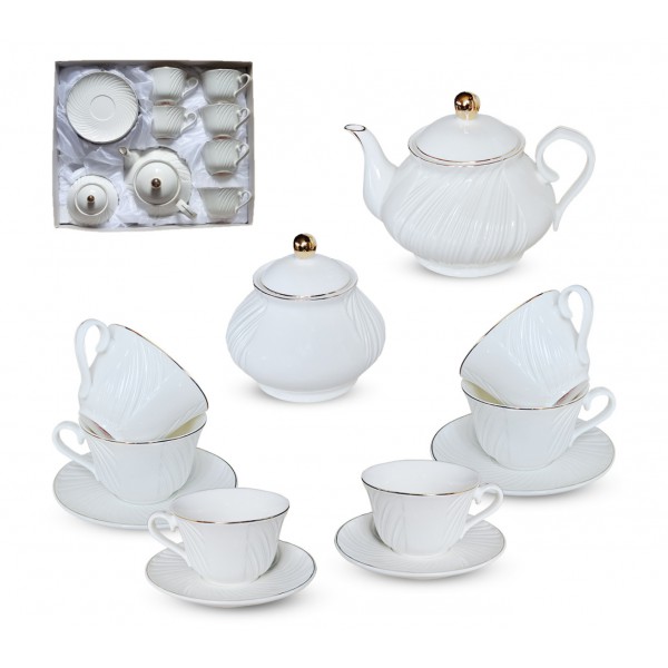 - Комплектація: 6 чашок, 6 блюдець, цукорниця, чайник