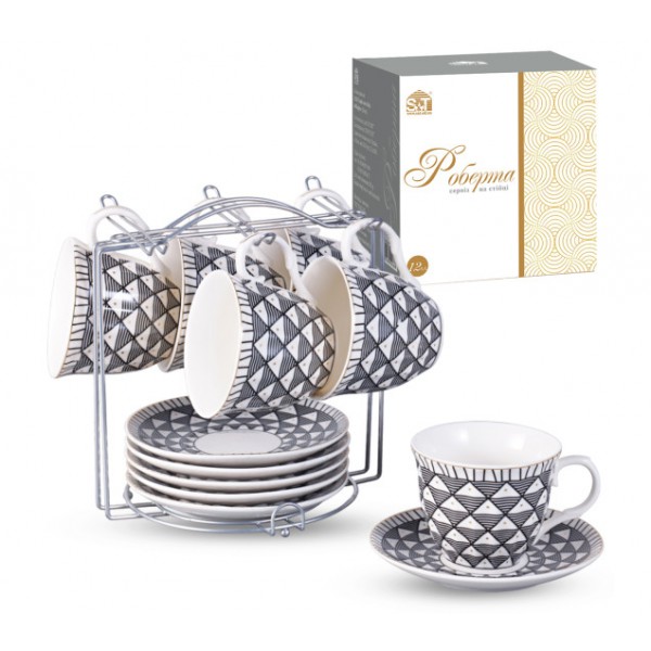 Набір чайний 12 предметів «Роберта» на стійці арт.: 15232 (S&T). Матеріал: Фарфор