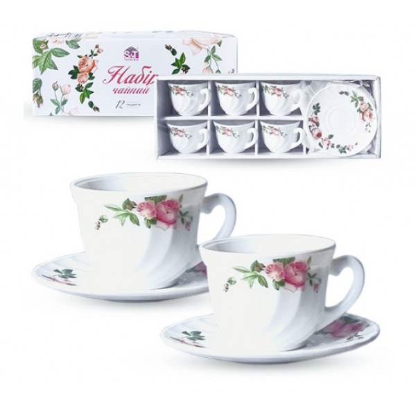 - Комплектація: 6 чашок + 6 блюдець