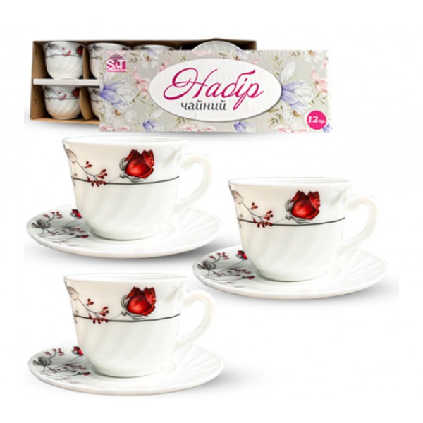 Набір чайний 12 предметів «Червона троянда» 190 мл арт.: 30055-202303 (S&T). Матеріал: склокераміка