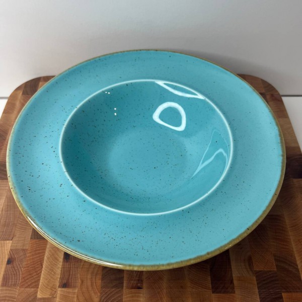 Тарілка 26 см для пасти Turquoise - виготовлена з глиноземистого фарфору, що забезпечує високу міцність, термостійкість і стійкість до подряпин. Бірюзовий колір із природною текстурою створює яскравий акцент у сервіруванні. Підходить для використання в духовці, мікрохвильовій печі, морозильній камері та посудомийній машині. Стійка до сколів, ударів та впливу сонячного світла.