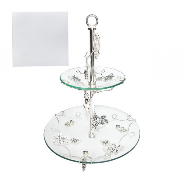 Фруктовниця 2х ярусна кругла 30×30×39 см «Виноград» арт.: 37208 (S&T) - елегантна скляна фруктовниця з декоративним рельєфом ідеальна для сервірування фруктів, солодощів або випічки. Має круглу форму з високою стійкою що додає вишуканості. Підходить для щоденного використання та святкового столу.