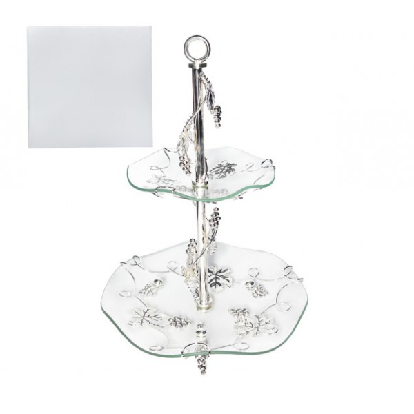 Цукерниця 2х ярусна «Виноград» арт.: 37211 (S&T)- елегантна двоярусна цукерниця з прозорого скла, декорована рельєфною виноградною лозою. Має круглу форму, металеву стійку та висоту 40 см. Ідеальна для сервірування солодощів, фруктів або закусок. Поєднує декоративність і практичність.