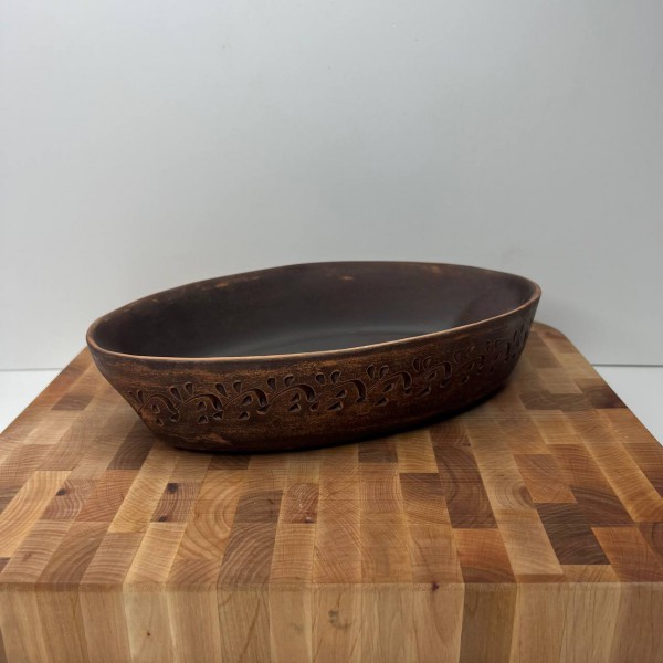 Глиняний посуд вирізняється своєю здатністю витримувати високі температури, ідеально підходить для запікання в духовці та зберігає тепло страв на тривалий час після приготування.