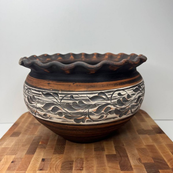 Макітра гончарна велика 26×16 см 19845 (Ангоб) - декор з білою смужкою*.