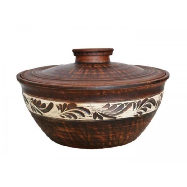 Макітра з кришкою 27 см 19502 (Ангоб) - декор з білою смужкою*.