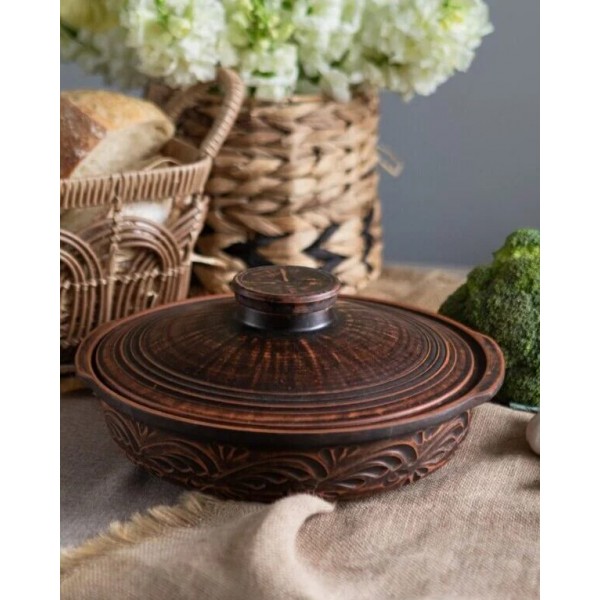 Глиняний посуд вирізняється своєю високою термостійкістю, ідеально підходить для використання в духовці й зберігає тепло страв на тривалий час після їх приготування.