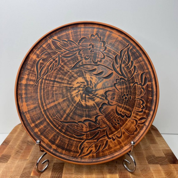 Тарілка різьблена 25 см 18641(Ангоб) - декор з білою смужкою*.