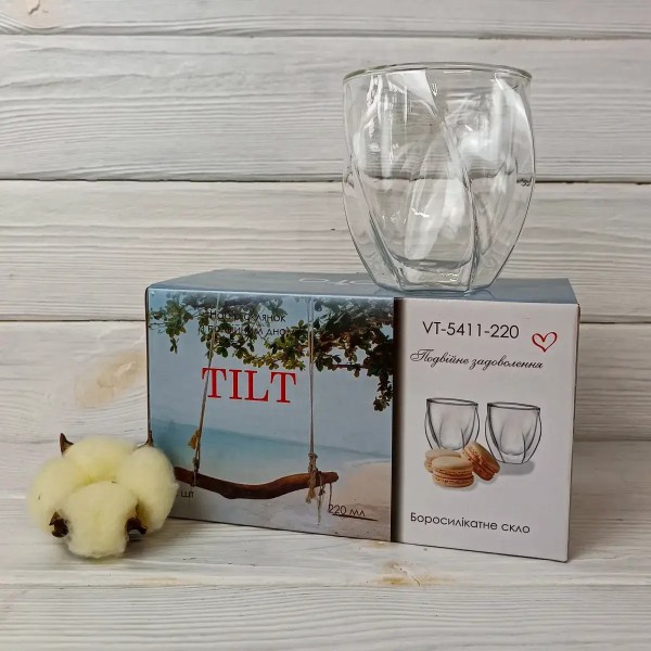 Набір чашок 220 мл з подвійними стінками 2 шт Tilt арт.: VT-5411-220 (Vittora)
