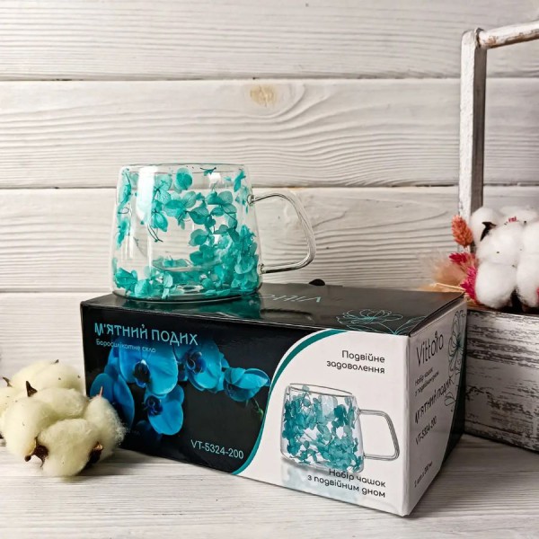 Набір чашок 200 мл з подвійними стінками 2 шт «М'ятний подих» арт.: VT-5324-200 (Vittora)