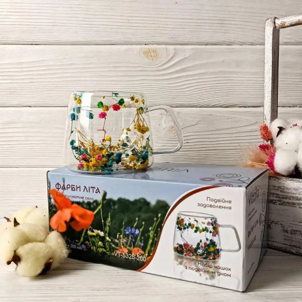 Набір чашок 200 мл з подвійними стінками 2 шт «Фарби літа» арт.: VT-5325-200 (Vittora)