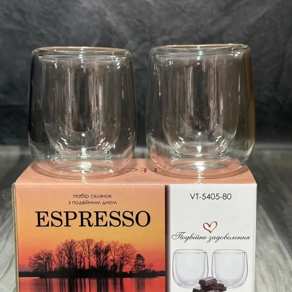 Набір чашок 80 мл з подвійними стінками 2 шт арт.: VT-5404-80 (Vittora)