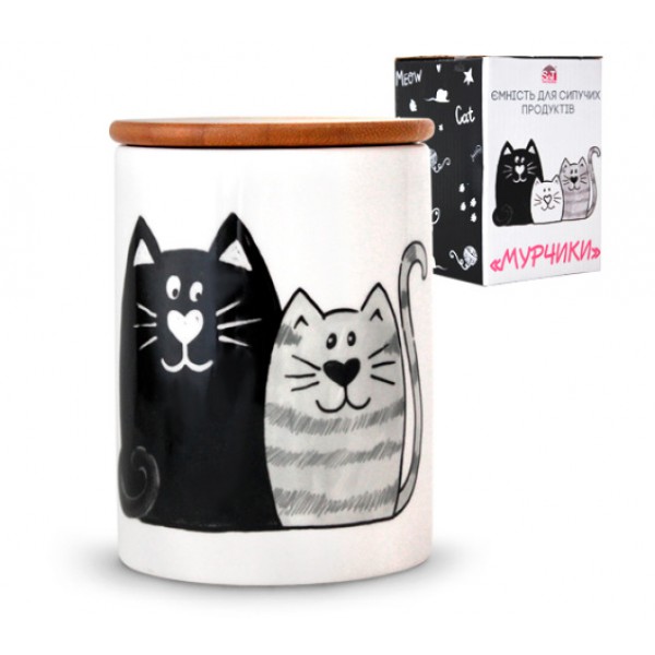 Банка 850 мл з бамбуковою кришкою «Мурчики» арт.: 6028-19 (S&T)