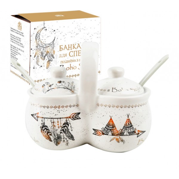 Банка для спецій подвійна з 2 ложками «Boho Style» арт.: 6023-20 (S&T). Матеріал: Кераміка