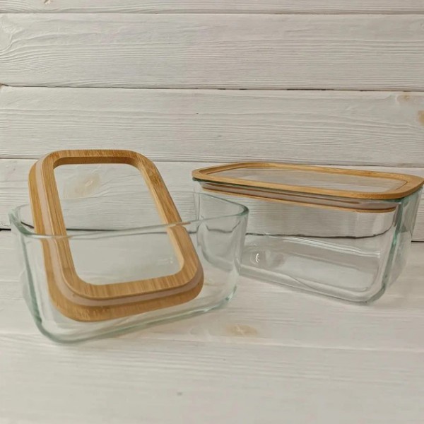 Контейнер 1380 мл скляний з дерев'яною кришкою арт.: VT-8613 (Vittora)
